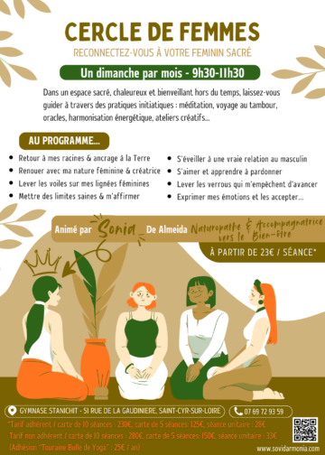 Vous souhaitez organiser un cercle de femmes chez vous, partager un moment avec des femmes de votre entourage (amies, proches, collègues… ), je me déplace !